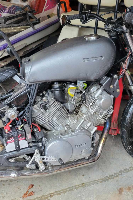 This is a 1982 Yamaha Virago 750 we picked up over the winter with some work already done. It had a bad misfire and the notorious “box of rocks” starter issue. We’re currently in the process of getting it back to 100% and will add our own touch before it hits the market.